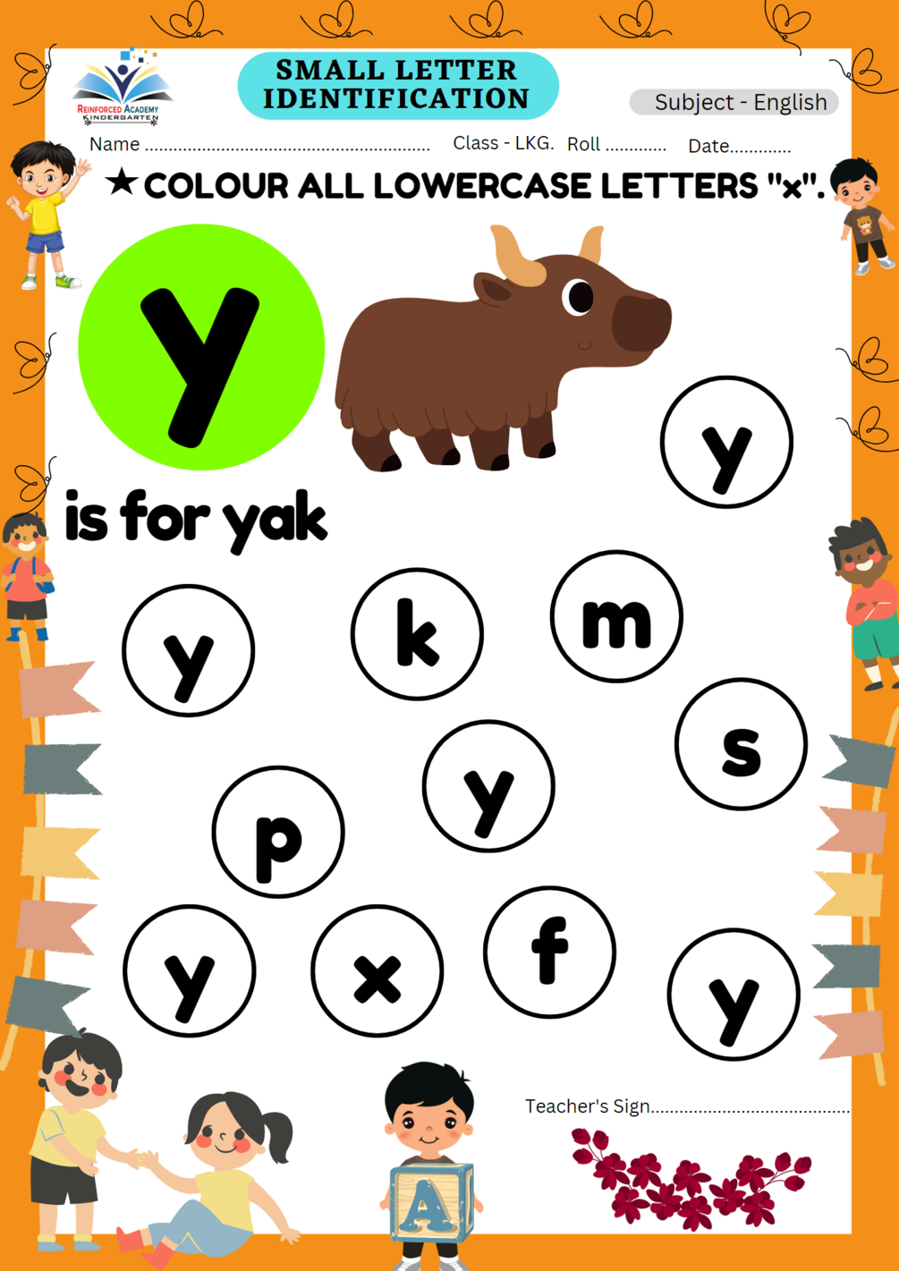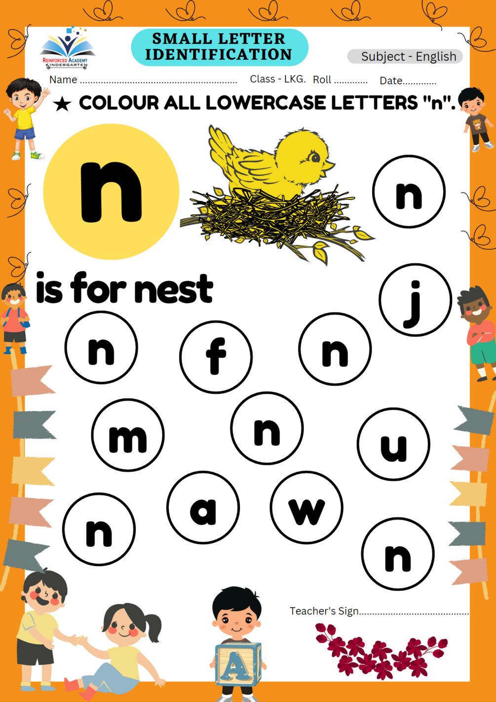 The "Lowercase Letter Identification a to z" worksheet pdf is designed in such a way students will recognize all the small case letters of the English language in a fun and playful way. Practicing this worksheet will improve his or her fine motor skill and also concentration. After downloading this worksheet print it on a4 size paper and practicing your child or student. Thank you!